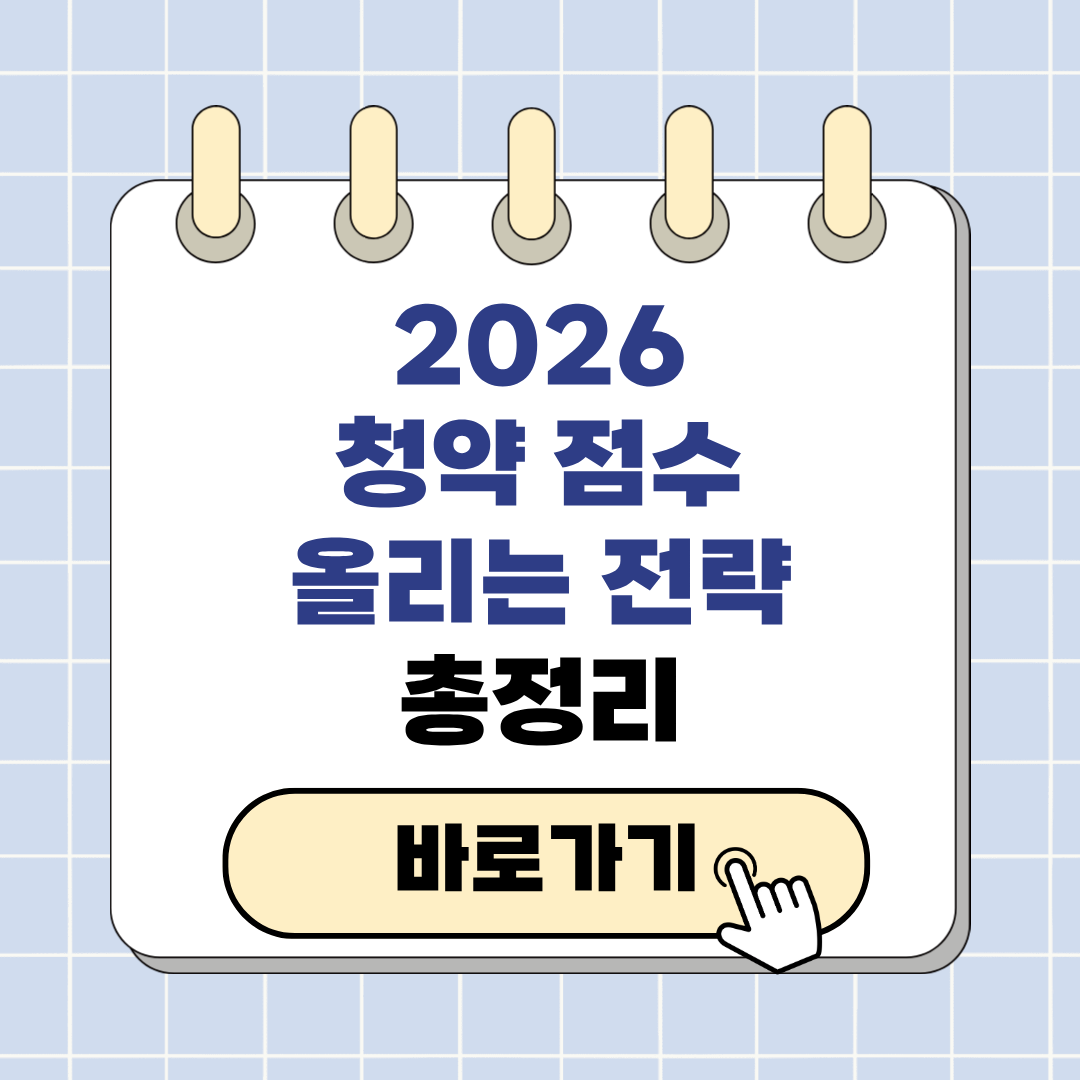 이 글은 2026 청약 점수 올리는 방법을 기준별로 정리한 내용이다. 무주택자라면 반드시 알아야 할 핵심 전략이다.청약 당첨 여부는 운보다 점수에서 갈린다.가점 항목을 이해하지 못하면 준비해도 소용이 없다.이 글에서는 2026년 기준으로 점수를 올릴 수 있는 현실적인 방법을 정리한다. 2026 청약 점수 가점제 구조 청약 점수는 무주택 기간, 부양가족 수, 청약통장 가입기간으로 구성된다.2026년 기준 가점제 총점은 84점 … 더 읽기